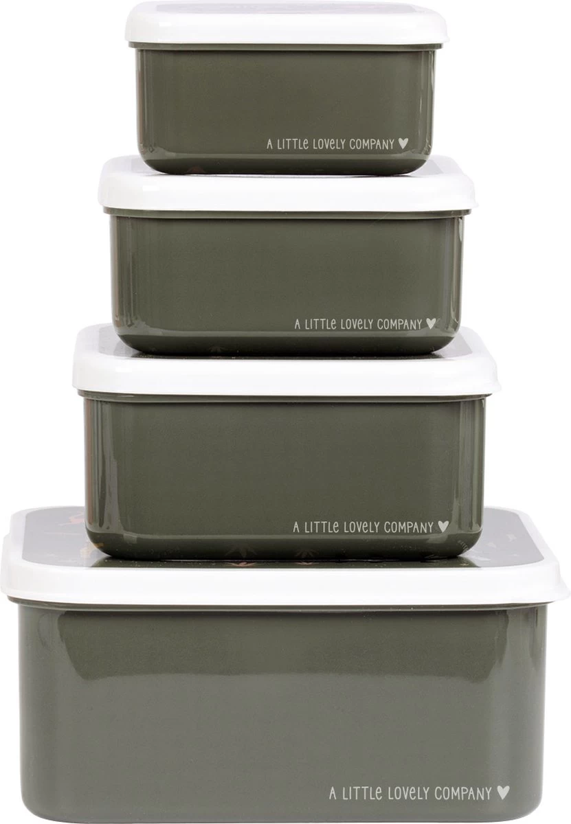 Leuke set van 4 bakjes; een lunch box en 3 snackboxjes, zodat je altijd het juiste formaat bakje bij de hand hebt voor de tussendoortjes van jouw kleintje.