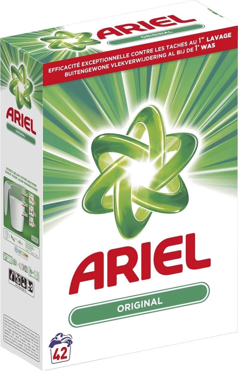 Wanneer je er goed uitziet en goed ruikt, dan voel je je ook goed. En dat begint allemaal bij het vinden van de beste wasbeurt voor je kleding. Hier komt het waspoeder van Ariel Regular in beeld. Verwijdert hardnekkige vlekken door diep in de celstoffen te reinigen en voorkomt dat ze er intrekken. Het verwijdert zelfs de vlekken die nare geurtjes veroorzaken, zoals zweet en lichaamsgeuren, en zorgt dat je kleren heerlijk schoon ruiken en er zo uitzien. Werkt al bij 30 °C. Dus als je je witte was stralend wilt houden, gebruik je het wasmiddel van Ariel. Was je kleding keer op keer met vertrouwen. Gebruik samen met Lenor wasverzachters en Unstoppables voor extra zachtheid en frisheid. Ariel Regular is ook beschikbaar als vloeibaar wasmiddel en in pods.