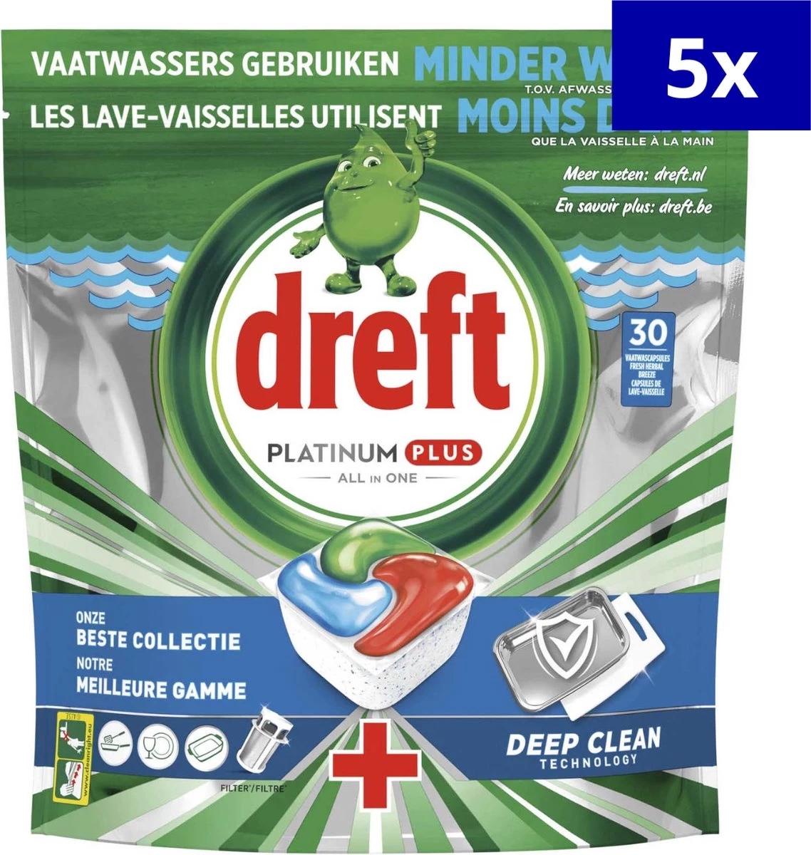 Dreft Platinum Plus All In One Vaatwastabletten bieden je een uitzonderlijk schone vaat in slechts korte tijd. Dreft Platinum Plus geeft je een uitmuntende reiniging en verwijdert hardnekkige voedselvlekken, zelfs in de testconditie van een korte cyclus. Dus als je weinig tijd hebt, dan is dat geen enkel probleem. Stap over op kort.