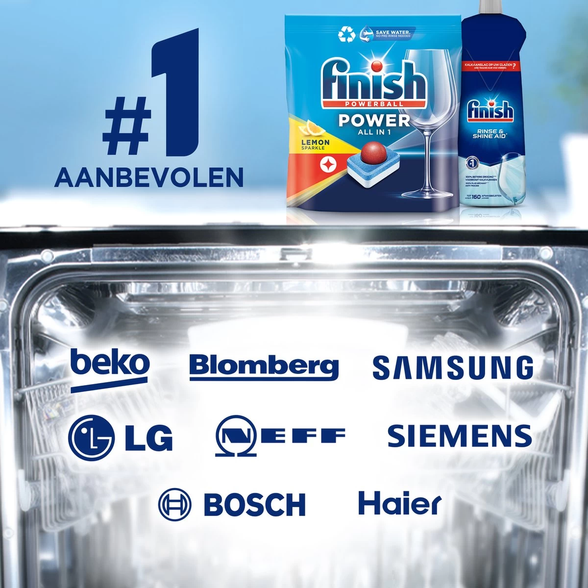 Finish zag het levenslicht in 1953 en is al meer dan zestig jaar gespecialiseerd in vaatwasmiddelen. Vandaag de dag zijn de producten van Finish verkrijgbaar in meer dan veertig landen over de hele wereld. Finish wordt aanbevolen door belangrijke fabrikanten van vaatwasmachines en servies. Finish is een merk dat zich inzet voor waterbesparing, Finish streeft ernaar om de ecologische impact van zijn producten en verpakkingen zoveel mogelijk te beperken.
