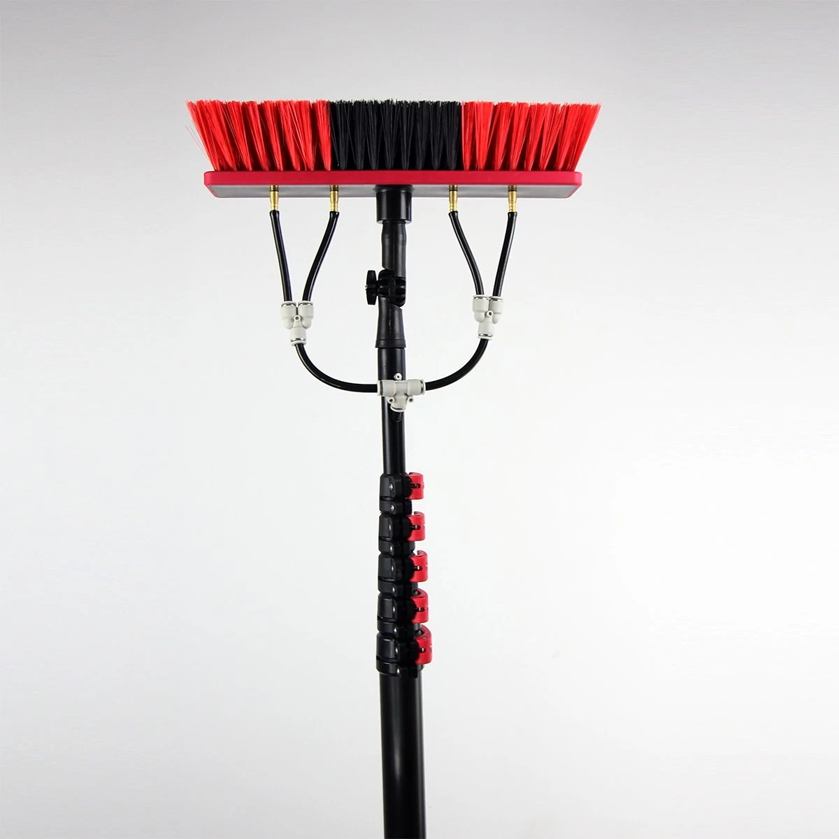 De Kibani telescoop borstel 6m is uitgerust met een uitschuifbare steel van hoogwaardig aluminium. De steel is gemakkelijk uitschuifbaar door de rode klemmen die op de steel zijn bevestigd. De telescoop borstel past op een Gardena koppeling, wat ervoor zorgt dat deze makkelijk aan te sluiten is aan uw watertoevoer. De Kibani telescoop borstel beschikt over maar liefst 4 waterslangen, bij concurrenten zijn dit er vaak maar 2.
