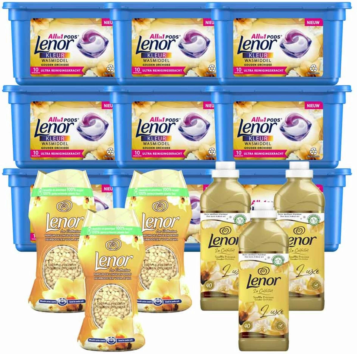 Lenor Gouden Orchidee wasmiddel is gecreëerd om in perfecte harmonie samen te werken met Lenor Gouden Orchidee wasverzachter en geurparels. Gebruik ze samen voor de perfecte wasroutine.
