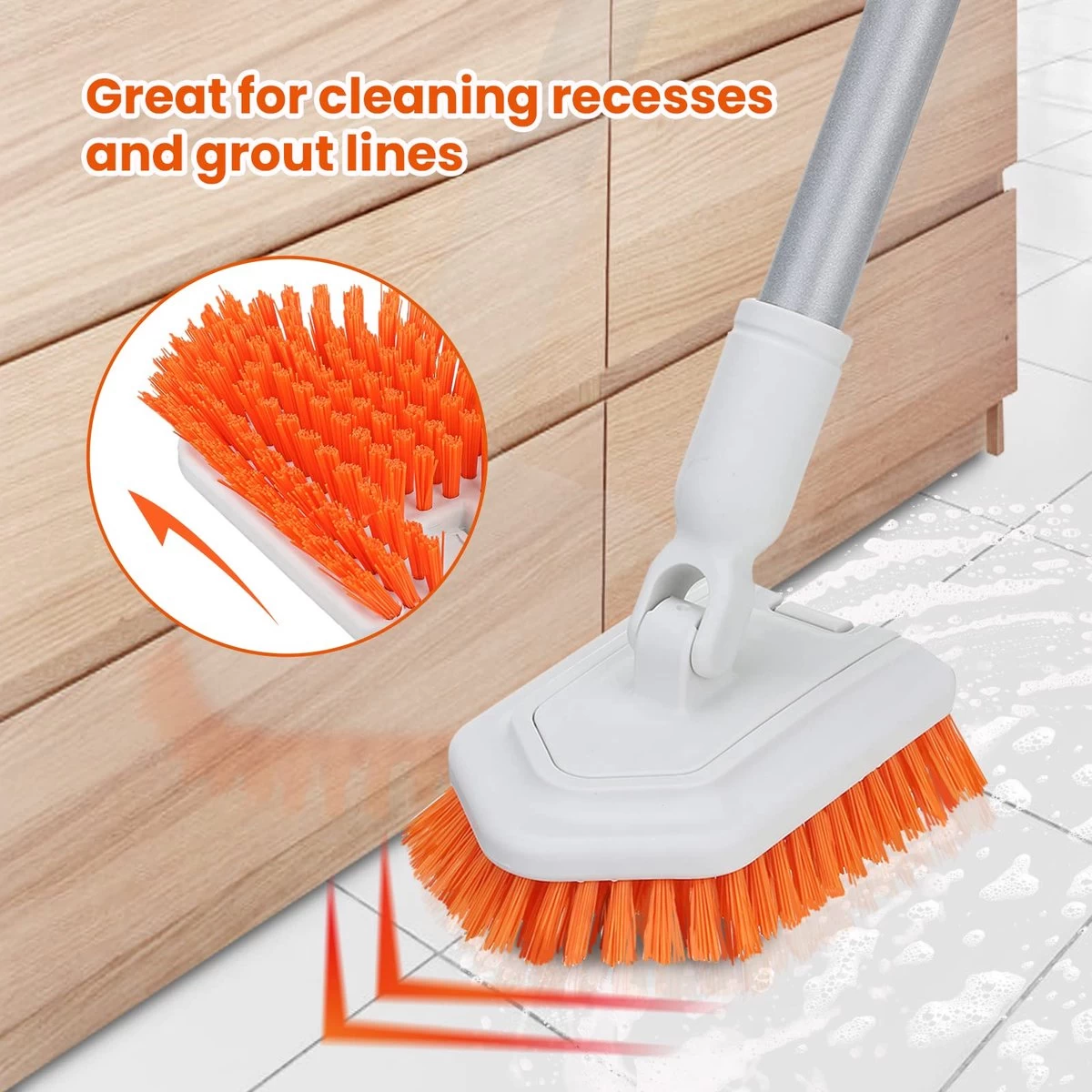 180° VERSTELBARE JOINT: Deze badkamerreinigingsborstel heeft een 180 graden verstelbare verbinding, die bij het reinigen van plaatsen met verschillende hoeken in de gewenste hoek kan worden afgesteld en gestabiliseerd.