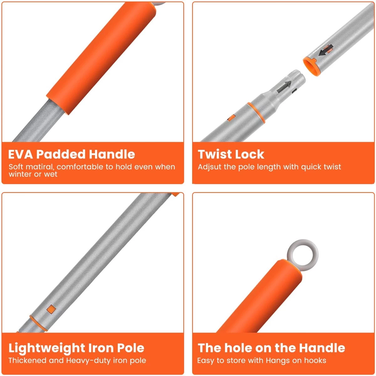 Eenvoudig op te bergen: de lichtgewicht antislip EVA-handgreep en het haakontwerp van deze badkamerreinigingsborstel maken het gemakkelijk vast te houden en op te bergen, zelfs als het nat is.