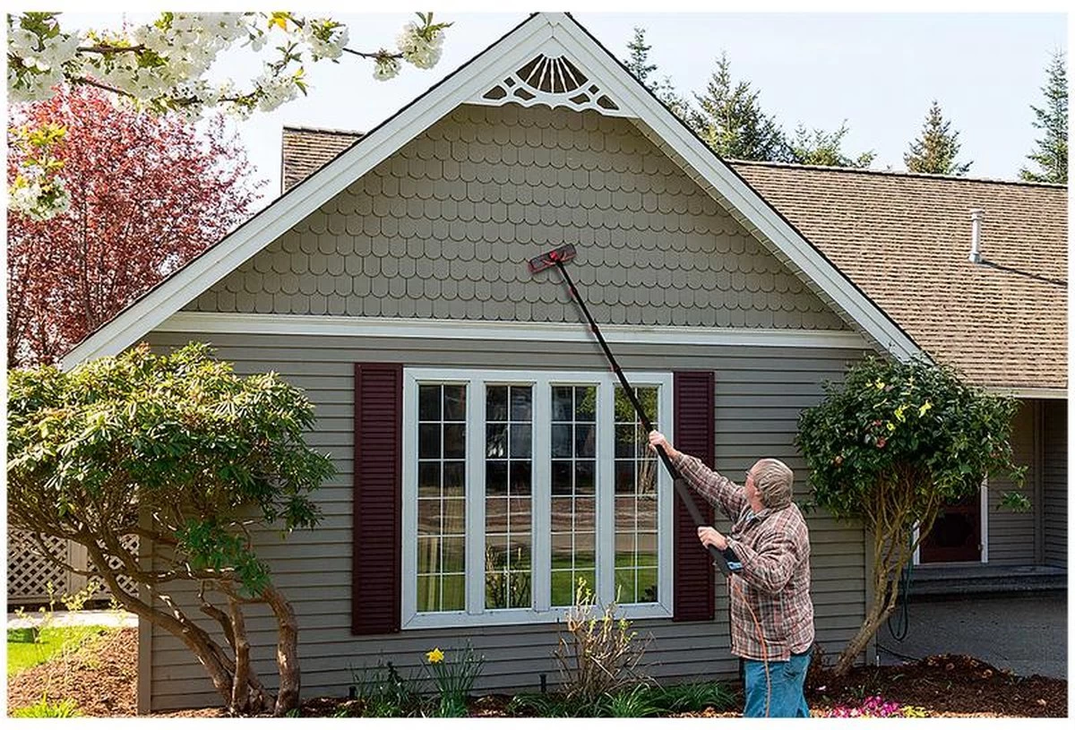 Vanaf nu hoef je geen ramenwasser meer te bellen voor het reinigen van je ramen en zonnepanelen! Met deze telescoopsteel van maar liefst 4,6 meter een borstel en handige zeep dispenser heb je alles bij de hand om snel en veilig je ramen, zonnepanelen, of gevel te reinigen. Sluit hem aan op je eigen tuinslang en je bent klaar om te gaan!
