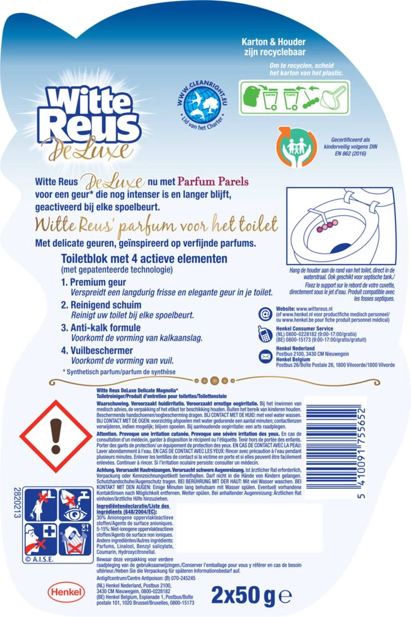 Witte Reus De Luxe Delicate Magnolia is Witte Reus’ eerste toiletblok met parfum. Het wc blok van Witte Reus biedt: