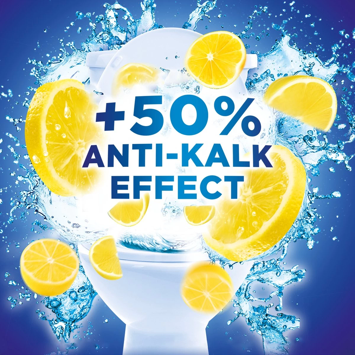 Dankzij de anti-kalk formule wordt kalkaanslag in het toilet voorkomen.